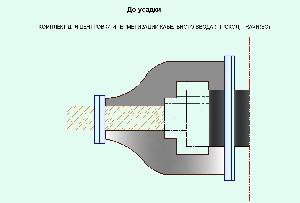 – комплект для центровки и герметизации кабельных вводов RAVN(EC)/РАВН(ЕС). Это изделие позволяет недорого, быстро и надежно отцентровать и загерметизировать выход кабеля из ПНД или асбесто-цементной трубы. Комплект рассчитан на большую разницу в диаметре трубы и кабеля, не подвержен воздействию солнечного света, морозу, бензо-маслостойкий. Подходит для прокладки кабельных линий от 1 до 220 кВ в разных климатических условиях. RAVN(EC) уже зарекомендовал себя на олимпийских объектах в г. Сочи, при ремонтах и прокладке новых кабельных линий в разных областях России.